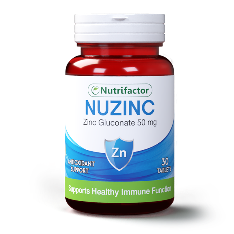 - Nutrifactor’s Nuzinc contains Zinc, which is vital for the normal functioning of the immune system, wound healing and maintenance of healthy skin.